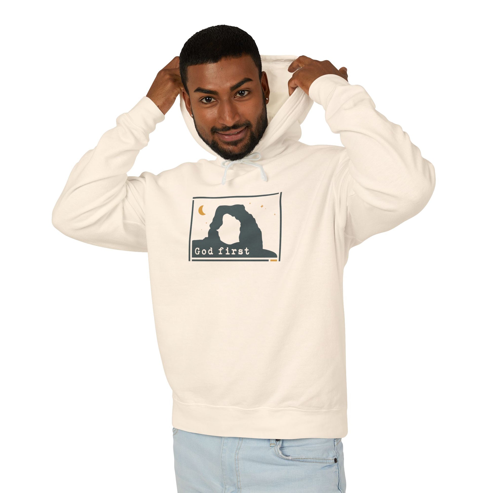 Arches National Park 'God First' Hoodie — Breathable Heirloom Knit